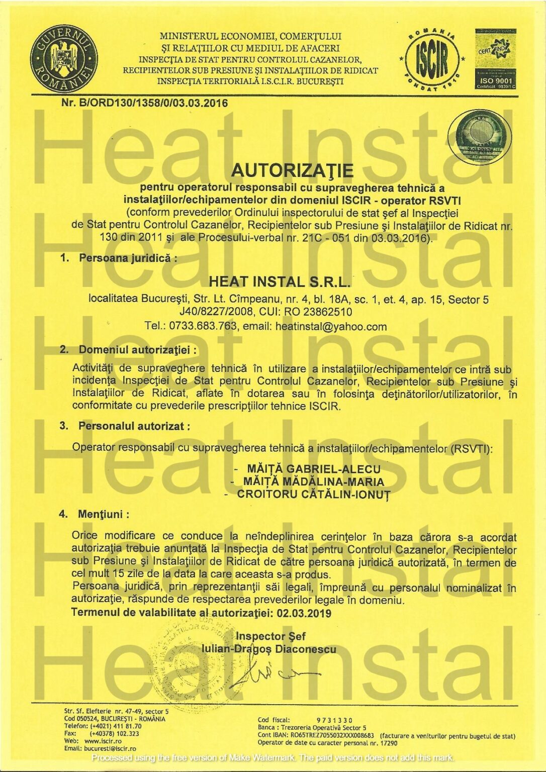 Autorizatie pentru supravegherea tehnica a instalatiilor/ echipamentelor din domeniul ISCIR - operator RSVTI